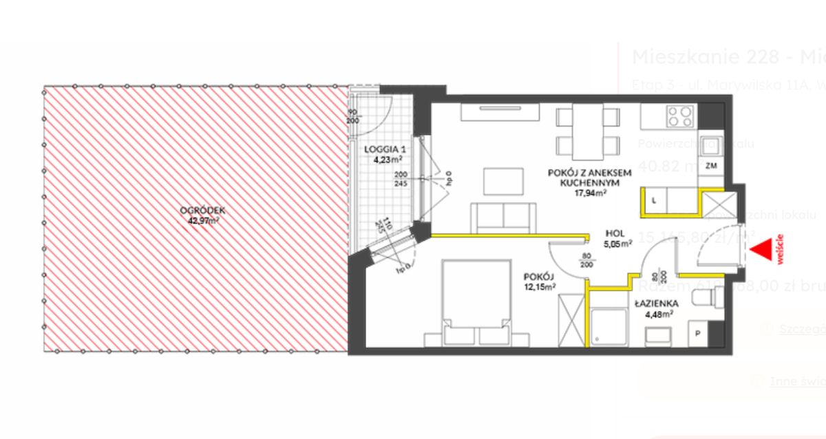 - ogródek: 42,97 m²